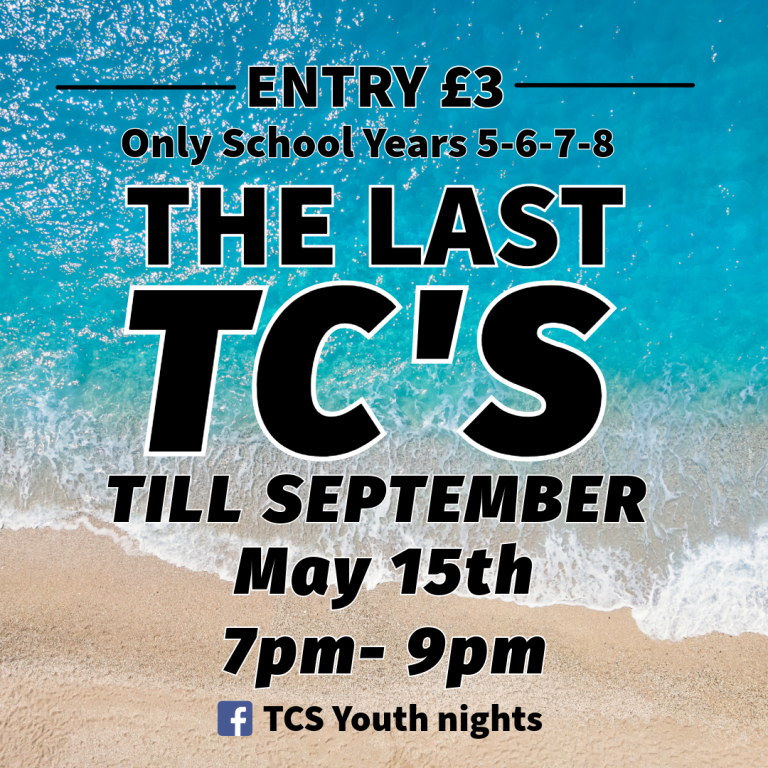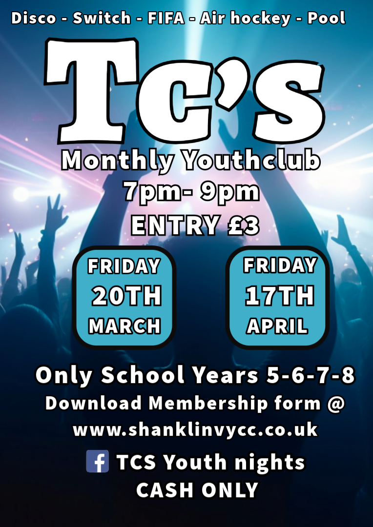 Come join us for evening at TC'S YOUTH CLUB - Next Tc's is of 17th of April, 7pm - 9pm. Cash only.